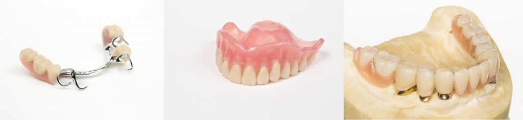 Teilprothese, beim Fehlen von einem oder mehreren Zähnen; zum Beispiel die Metallgerüstprothese, die mittels Klammern an die noch vorhandenen Zähne angehängt wird.